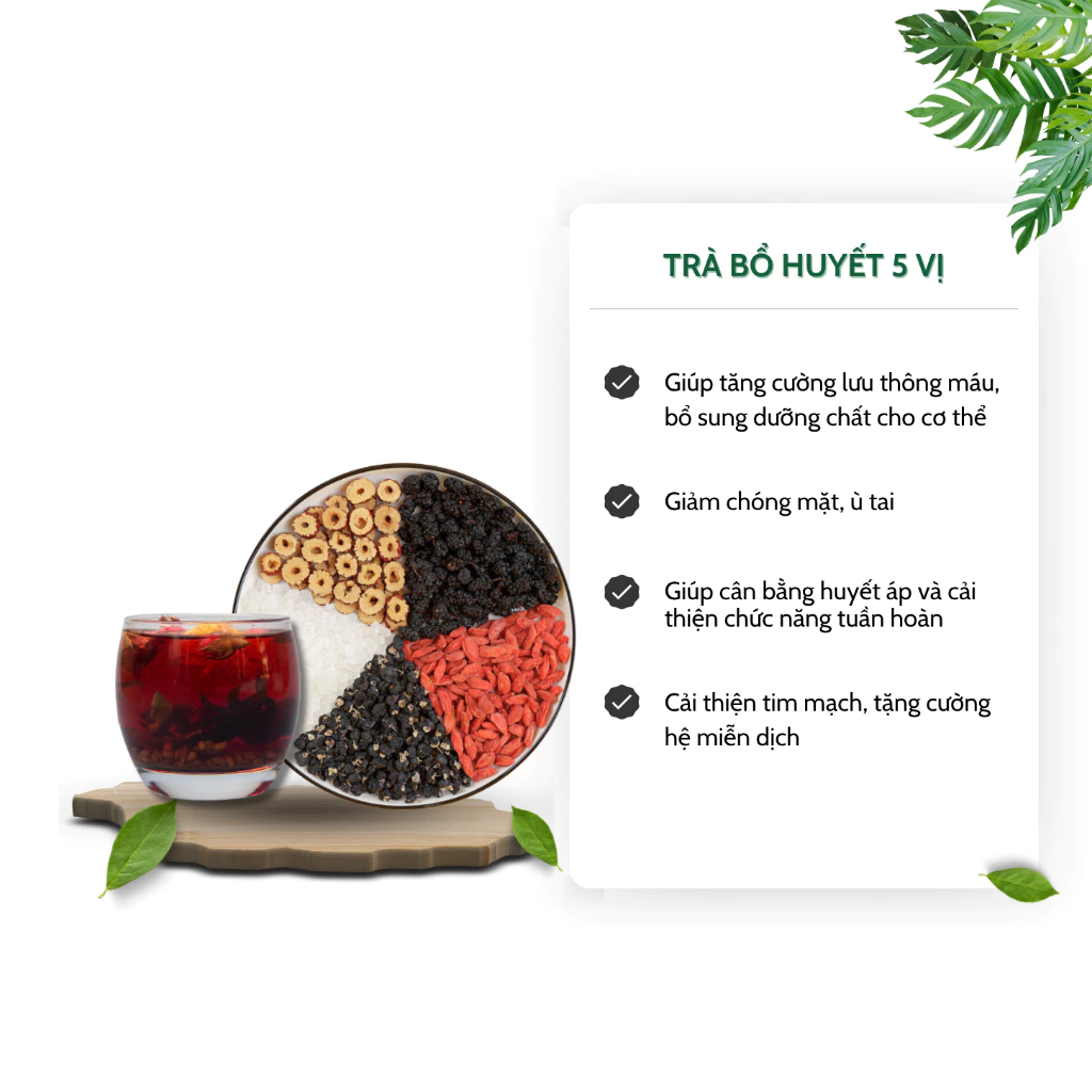 TRÀ BỔ HUYẾT 5 VỊ – GIÚP BỔ HUYẾT, GIẢM CHÓNG MẶT Ù TAI – TIỆM TRÀ VIỆT